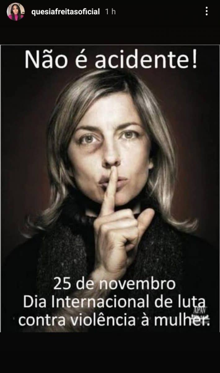 Em seguida, a cantora gospel publicou uma imagem com a frase: “Não é acidente. 25 de novembro, dia internacional da luta contra a violência à mulher”.