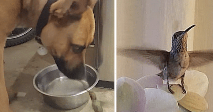 Este cachorrinho, chamado Rex, foi adotado e agora tem uma família, ele sabe muito bem ser gentil e solidário com quem precisa. Ao ver um beija-flor caído no pátio de sua casa em Whittier, na Califórnia, o cão sabia que precisava ajudá-lo. O dono do cão, Ed Gernon, havia visto o pássaro, mas pensou que ele já havia partido.