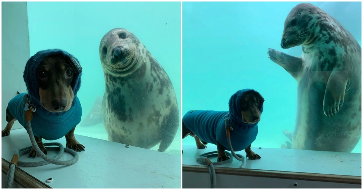 Stanley é um cão da raça “salsicha” e Aayla é uma foca que foi resgatada pelo Cornish Seal Sanctuary, em Cornwall, no Reino Unido. Os animais se conheceram quando Stanley e sua família foram visitar o santuário onde Aayla estava. A amizade foi de primeira vista e os dois interagiram entre si, resultando em fotos muito fofas e adoráveis.