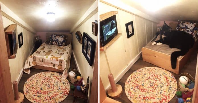 Existem pessoas que são capazes de chegar a níveis suspeitos de amor por seus animais, gastando mais dinheiro com eles do que consigo mesmas. Nesse caso, um casal compartilhou no Twitter algumas fotos do novo quarto – sim, quarto – que construíram para o seu querido gato.