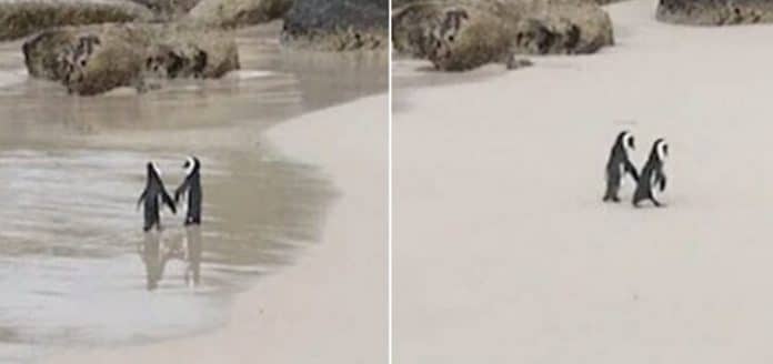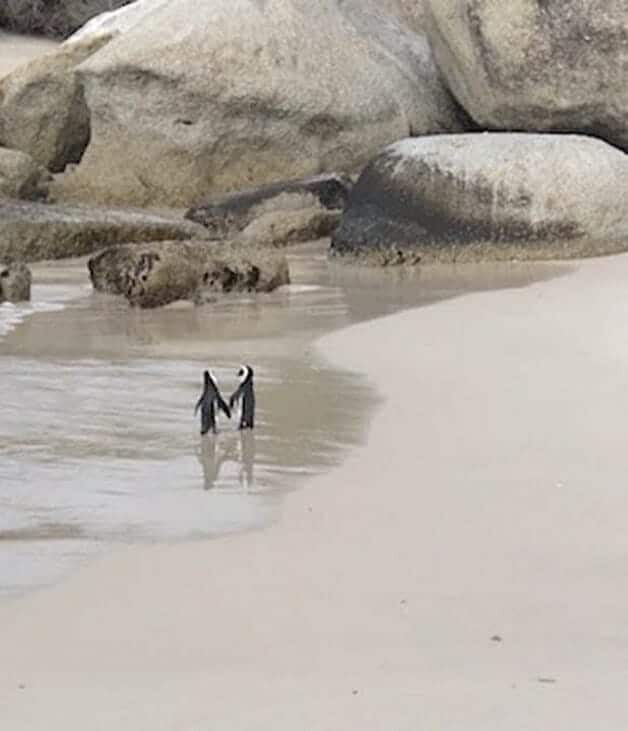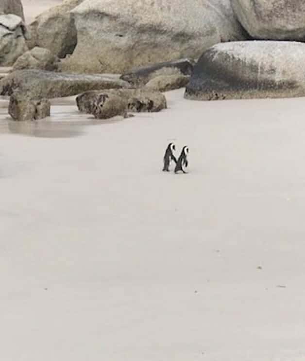 Um casal andando de mãos dadas em uma praia tropical na costa sul-africana não seria motivo para um vídeo viralizar na Internet. O que fez desse vídeo um sucesso é que essa cena carregada de ternura não foi realizada por duas pessoas, mas por dois pinguins adoráveis e encantadores. O passeio romântico ocorreu em Boulders Beach, ou Playa de los Rochedos, a 40 km da Cidade do Cabo.
