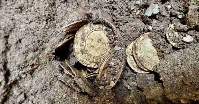 Num primeiro momento, eles acreditaram se tratar das ruínas da fiação elétrica, mas depois perceberam que estavam enganados e imediatamente chamaram um leiloeiro de Londres para ajudar a avaliar as misteriosas moedas brilhantes. O leiloeiro Gregory Edmund disse que o tesouro notável é diferente de qualquer outro achado na arqueologia britânica.