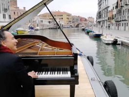 “Veneza deve recomeçar com a música“, disse o artista. “Tocar no meio de seu silêncio foi uma emoção particular. A poesia da cidade é arte, cultura, música e magia”.