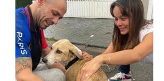Cachorrinha é deixada pelo tutor com mochila com todos os seus...