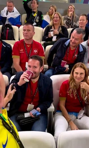 O jogo aconteceu nesta quinta (24) e Portiolli assistiu à partida no Estádio Nacional, em Lusai. No vídeo, Portiolli grita “gol” com entusiasmo e filma um grupo de sérvios que estavam atrás dele. Um dos torcedores levou a brincadeira na esportiva e levantou o copo para um brinde.