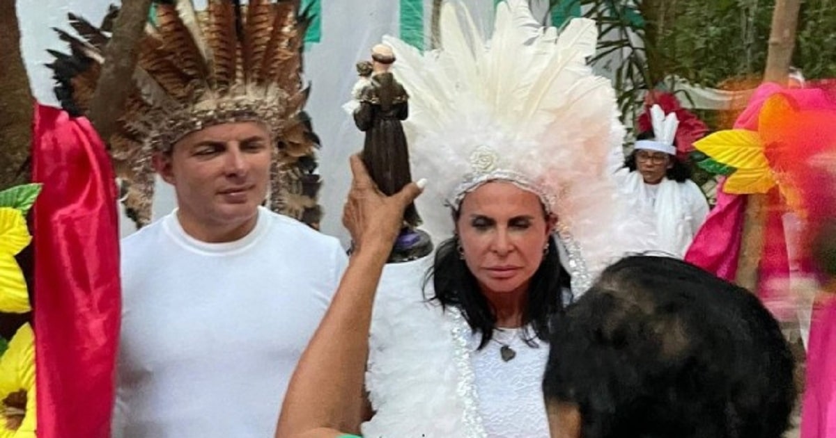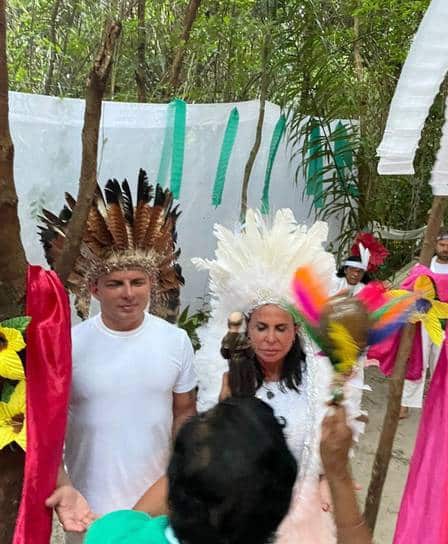 A cantora Gretchen, de 63 anos, se casou pela terceira vez com o seu 18º marido, o músico Esdras Souza. Os dois selaram mais uma vez a união em uma cerimônia indígena na Pajelança, na última sexta-feira, 6, na Ilha do Marajó, no Pará.