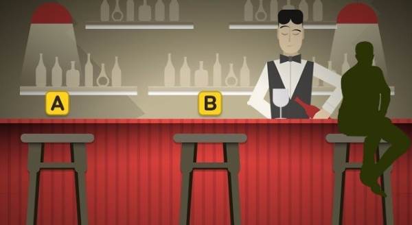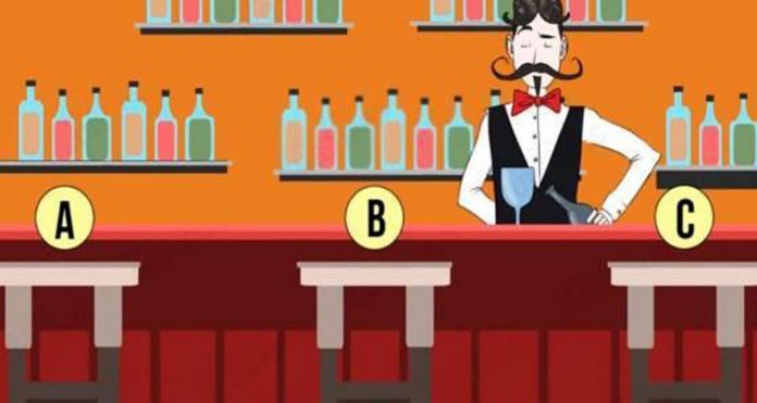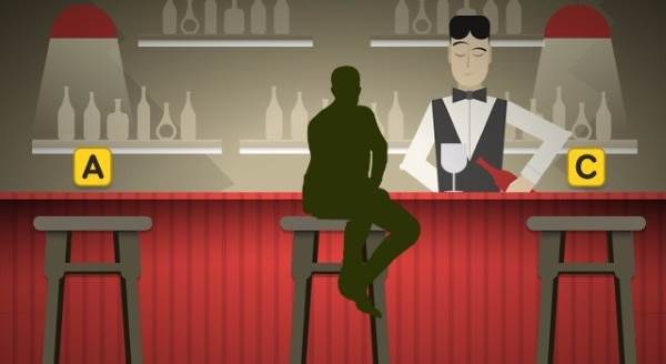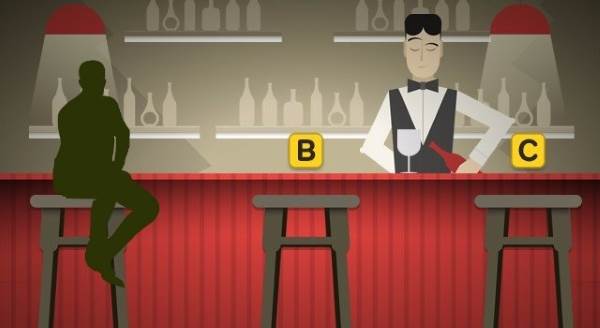 Imagine entrar neste bar e encontrar estes três bancos vazios na frente do balcão, onde você escolheria se sentar? Direita, esquerda ou central? Pense por alguns momentos e responda, após observar a imagem. Os resultados do teste estão logo mais abaixo.