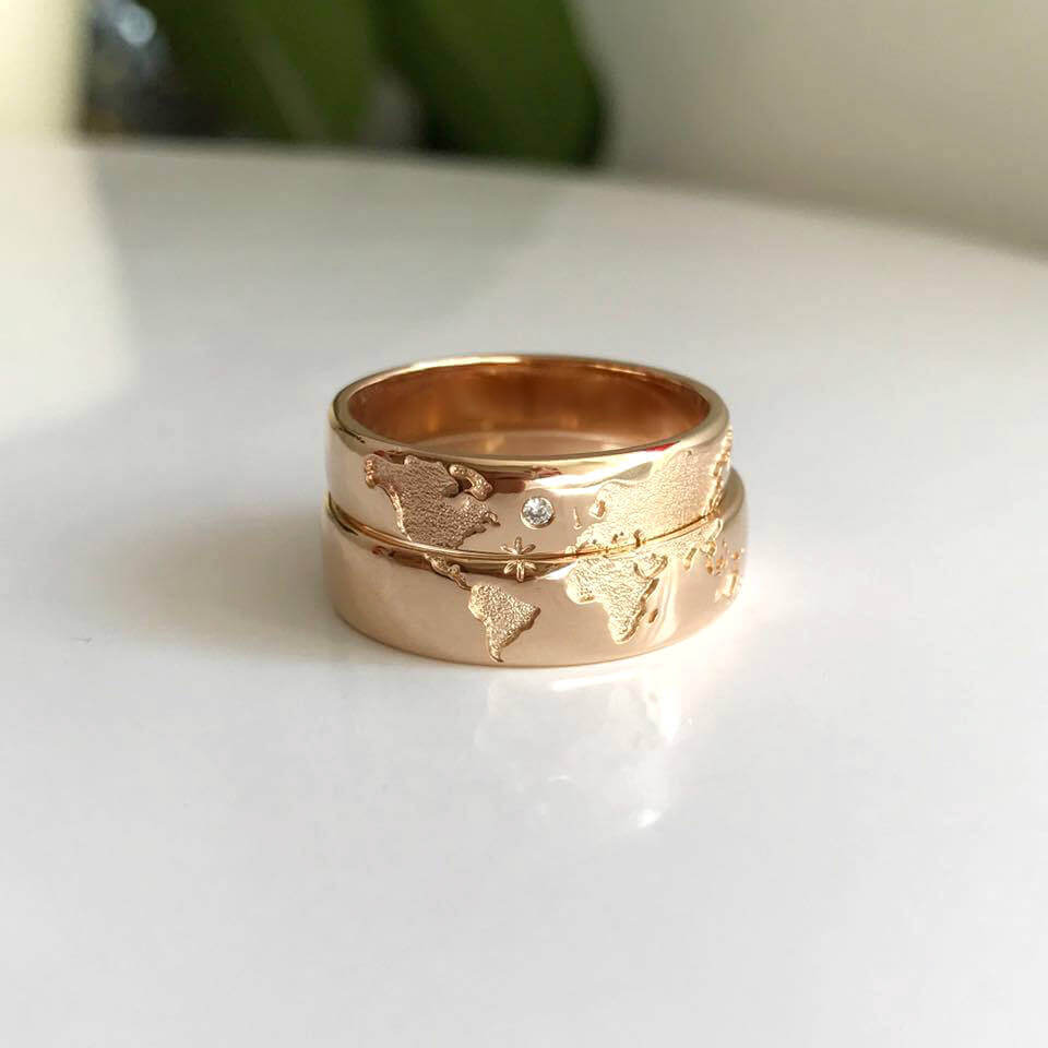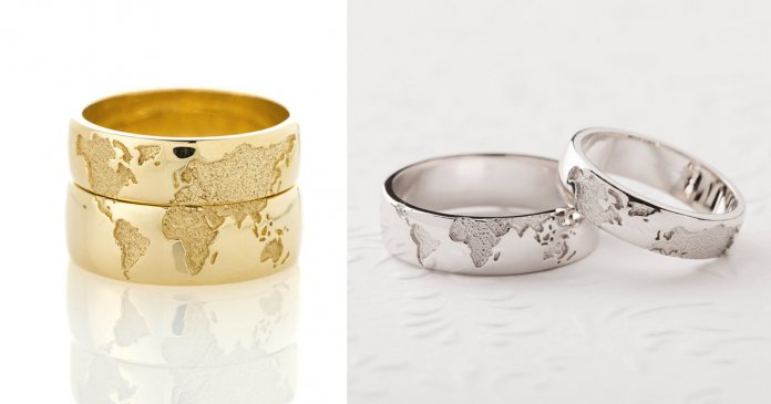 Estas alianças são da Escorial Jewelry e estão à venda pela moda quantia de cerca de 700€ (aproximadamente 3mil reais). 14 quilates de ouro e tudo feito à mão, não só simbolizam a união de um casal como também permite que ambos possam lembrar todas as aventuras e viagens que fizeram ou querem fazer a dois.
