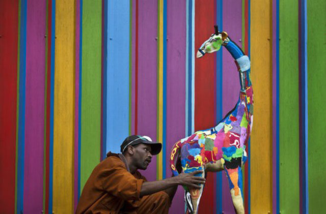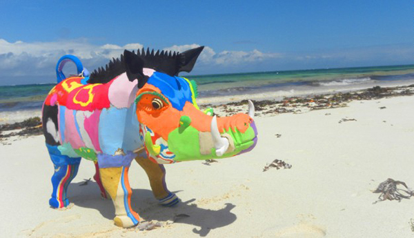 Passeando pelas praias da costa leste da África, você pode se deparar com esculturas coloridas de elefantes, javalis, rinocerontes, leões e girafas, algumas em tamanho real, feitas com chinelos de borracha velhos encontrados no mar.