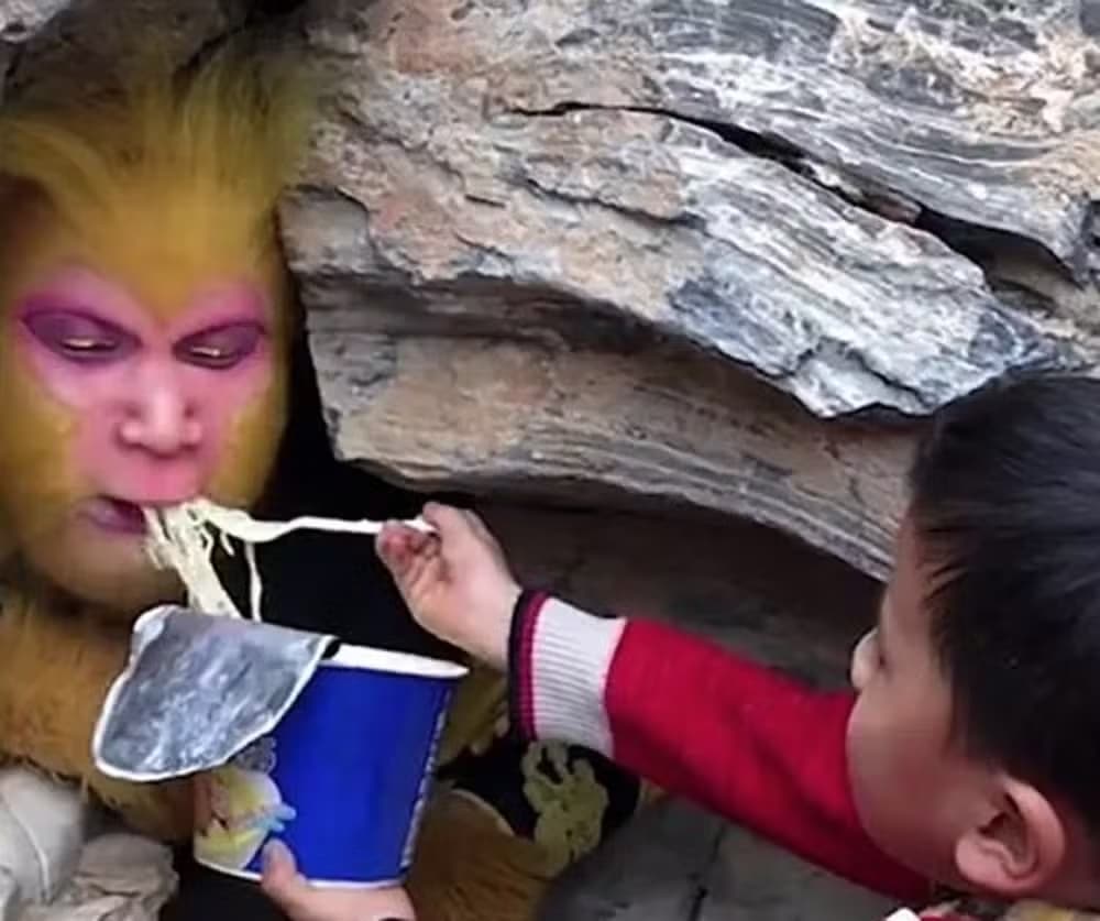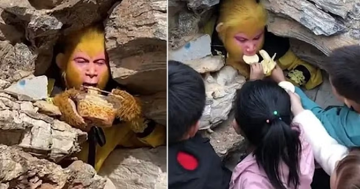 Dream job? In the Taihang Wuzhishan scenic area in Hebei province, a performer dressed as the Monkey King recreated a scene of the mythical figure being trapped under a section of Five Elements Mountain as punishment, attracting tourists to feed him during the Labor Day holiday. pic.twitter.com/JYKGlqdVF0