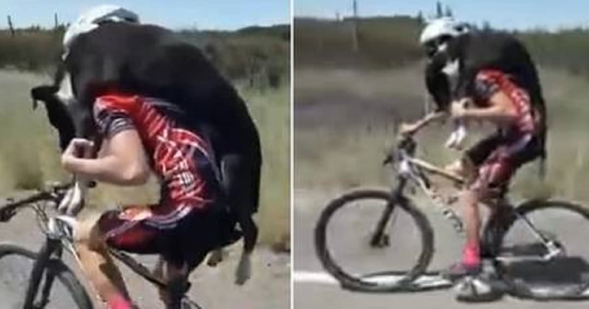 Três ciclistas de Villa Regina, Argentina, estavam pedalando na província de Rio Negro, quando um deles avistou um cachorro abandonado na estrada e decidiu interromper o seu percurso para ajudar o animal.