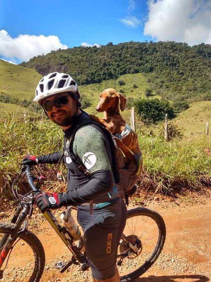 Fiel ao seu estilo, o ciclista pegou o bassê nos braços e, em seguida, colocou-o na mochila, para que pudesse subir na bicicleta e levá-lo para um lugar seguro onde poderia dar-lhe o carinho e os cuidados adequados. O destino e a bicicleta os uniram, então não deve nos surpreender que em um futuro não muito distante ambos se tornem companheiros de viagem.