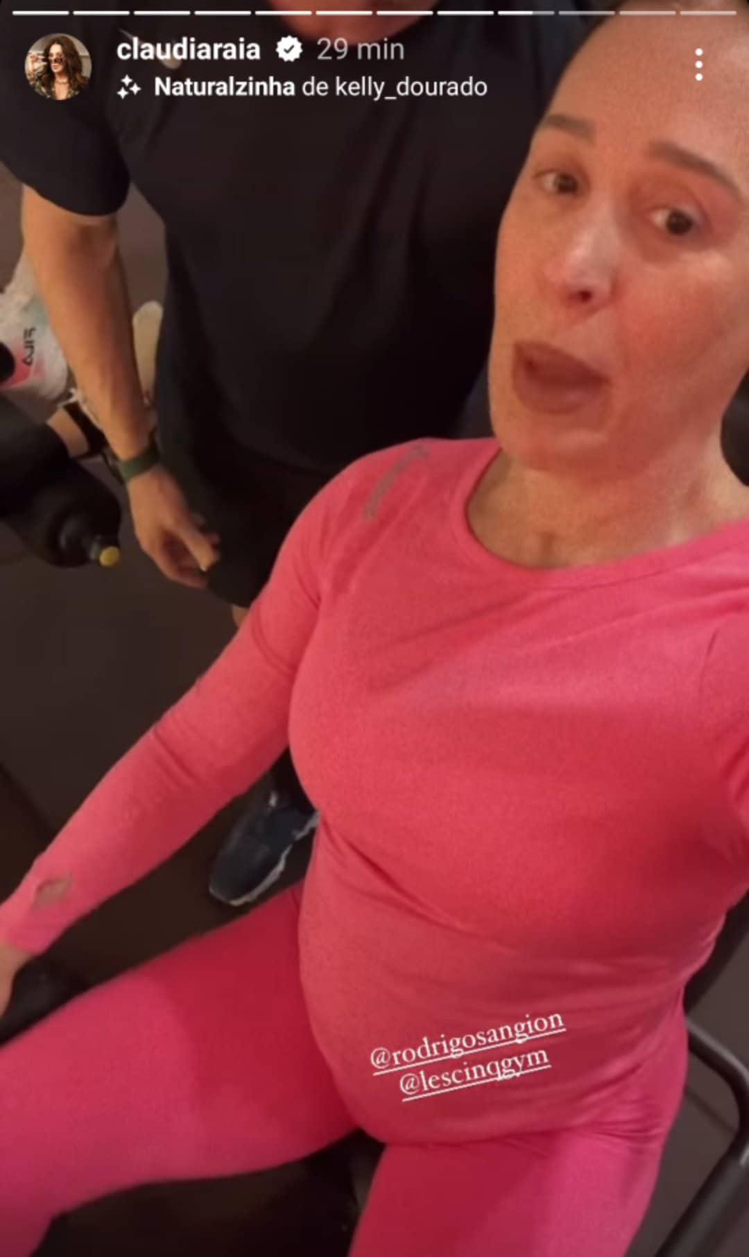 A atriz Claudia Raia, que espera seu terceiro filho aos 55 anos, impressionou seus fãs nesta sexta-feira, 30, ao aparecer se exercitando na academia. Em um vídeo postado em seu perfil no Instagram, a atriz surge com um look de ginástica todo rosa, deixando em evidência o abdômen saltado da gravidez.