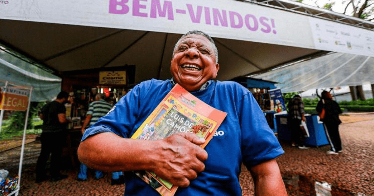 Encorajado a comprar o primeiro livro da vida, revirou algumas bancas com preços entre R$ 1 e R$ 10. Chegou a pegar uma obra que tratava sobre a Revolução Russa de 1917, mas achou que poderia ser um pouco difícil para quem está começando a conhecer o mundo da leitura. Três bancas à frente, porém, agarrou Janela da Poesia – Turminha do Peteleco, da escritora Ana Cecília Romeu, feita para ler, colorir, desenhar e ainda criar textos. Ele pensou em ler e brincar junto com os netos.