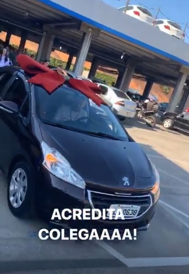 O humorista então entrou no carro de Rogério e todos seguiram para uma concessionária próxima, para realizar a compra do novo carro. Em determinado momento, o humorista flagrou a emoção do beneficiado ao ver o automóvel que ganhou. “Acredita, colega”, vibrou o humorista.