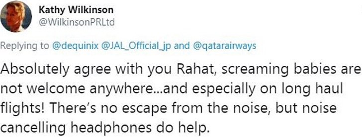 “Obrigado @JAL_Official_jp por me avisar sobre onde os bebês planejam chorar e gritar durante um voo de 13 horas. Isso realmente deveria ser universalmente exigido.”, escreveu um internauta.