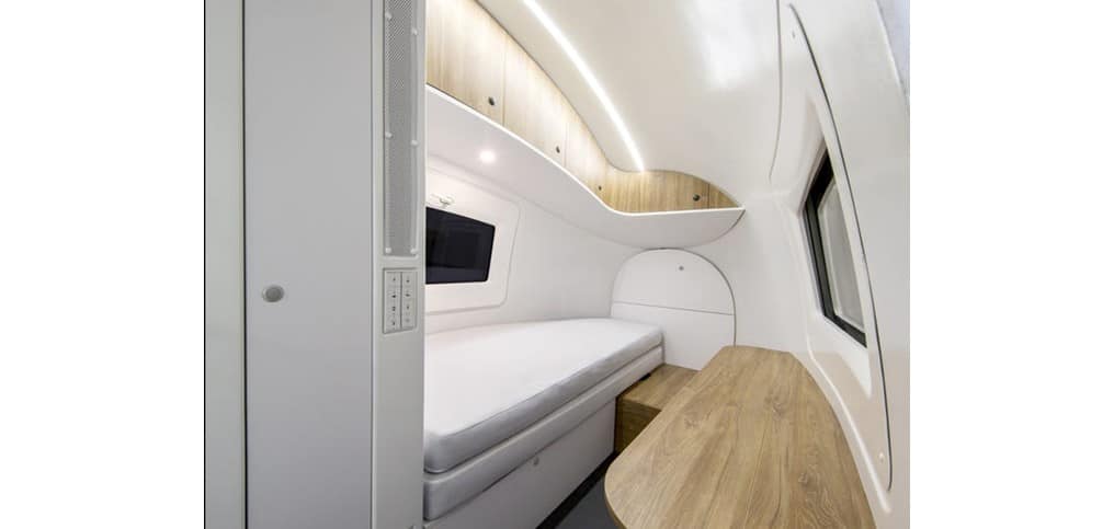 A cápsula é compacta, mas se engana quem pensa que ela não cumpre com todas as exigências de uma casa tradicional. Ela possui uma cozinha equipada, um banheiro e um quarto que pode ser transformado em uma sala de estar. Quem precisa mais do que isso?