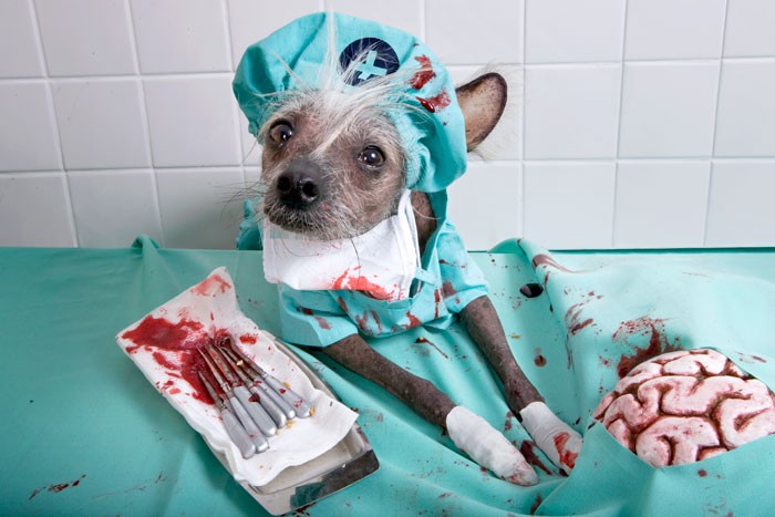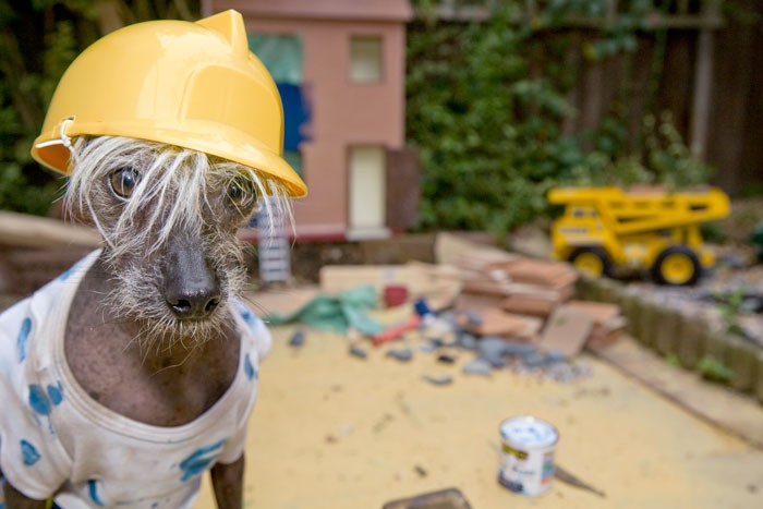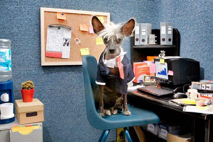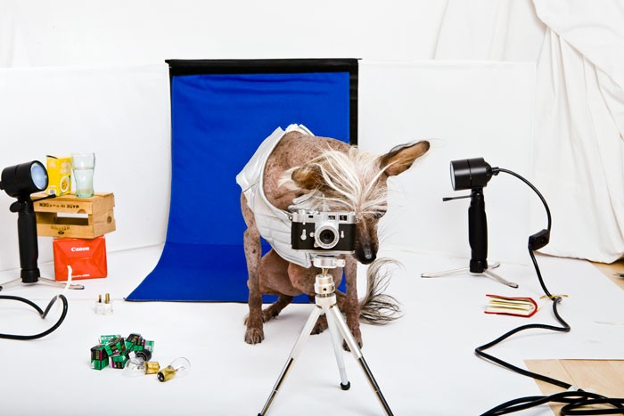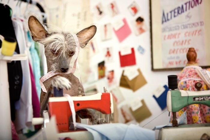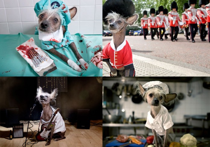 Irina Werning é a responsável pelo projeto fotográfico onde Chini, uma cachorrinha da raça “Cão de Crista Chinês” . aparece desempenhado funções das mais diversas profissões.