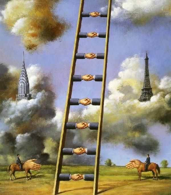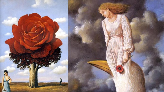 O trabalho de Olbinski é muito semelhante ao trabalho do famoso surrealista belga René Magritte; Olbinski descreve sua abordagem à pintura como um “surrealismo poético”.