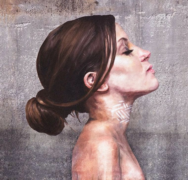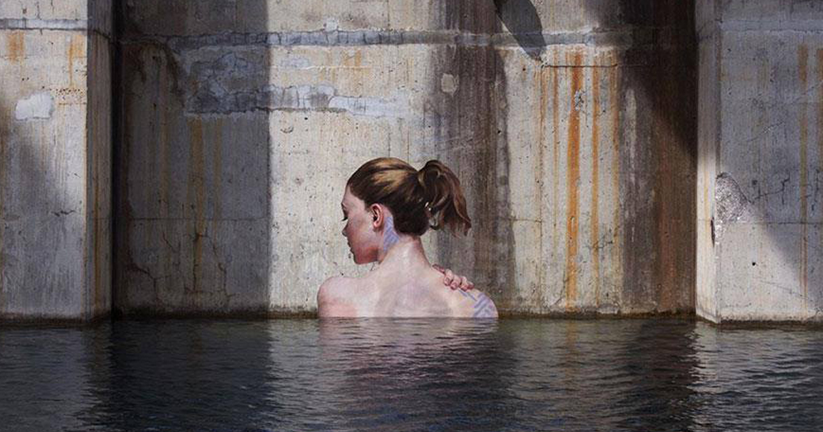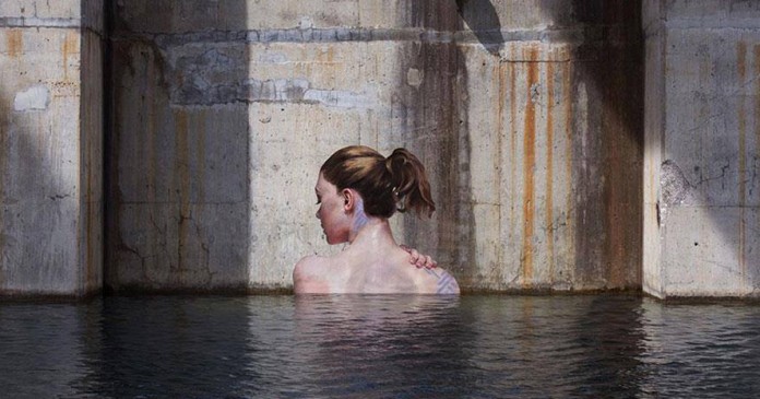 As figuras femininas surgem, então, também da água e o artista explora seus reflexos em um efeito tridimensional hiper-realista.