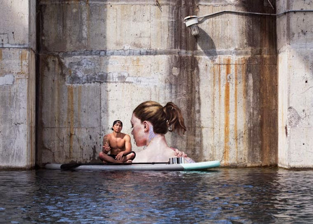 Sean Yoro é um artista havaiano que, mesmo morando em Nova Iorque, mantém parte de seu trabalho criativo sobre uma prancha de surfe. Para isso ele realiza pinturas de “street art” em murais de concreto que foram construídos dentro da água.