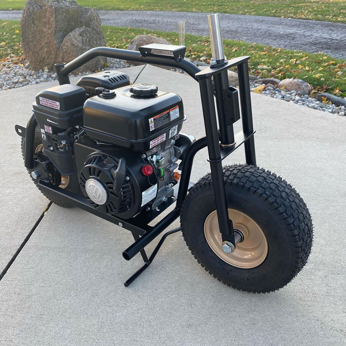 “O original (verde) tem um motor de 79cc e é mais bonito do que prático”, explicou Walter. “O segundo (azul) tem mais distância ao solo e um motor de 212cc. É mais prático andar na estrada. ”