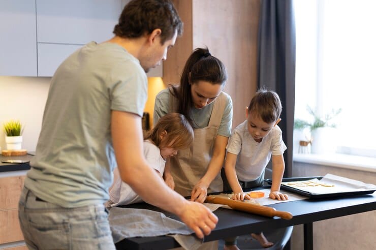 Ajudar no preparo das refeições: Amplia as habilidades culinárias e o trabalho em equipe na família.