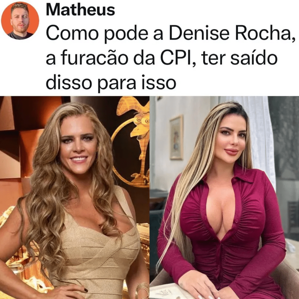 “Como pode a Denise Rocha, a furacão da CPI, ter saído disso para isso”, comentou um internauta. “Só eu que prefiro antes?”, questionou outro. “A mulher nasceu de novo. Irreconhecível”, escreveu uam terceira pessoa.