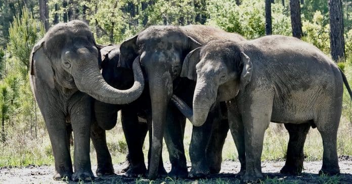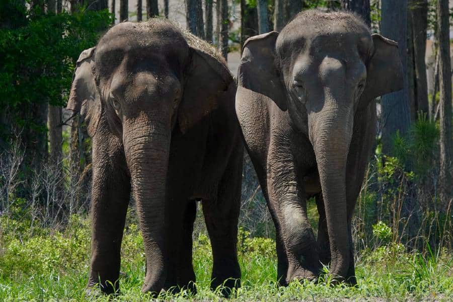 Um grupo de 35 paquidermes asiáticos, anteriormente sob os cuidados dos Ringling Bros. e Barnum & Bailey Circus, estão sendo recebidos em uma reserva de 2.500 acres na Flórida, onde podem passear entre seus habitats favoritos – pântanos, pastagens ou florestas – e mergulhar em 11 poços de água diferentes.