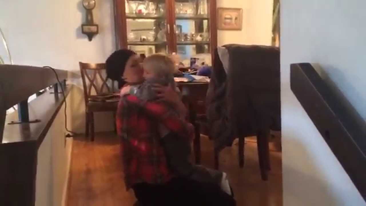As cenas gravadas por sua irmã mostram Laura Martancik, uma americana que luta contra o câncer desde 2013, de joelhos ao chegar em casa e seu filhinho pulando em seu colo repetidamente.