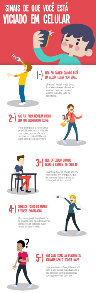 Abaixo, em poucos segundo, é possível detectar vários sinais de que o uso de celular pode estar tomando uma proporção exagerada em sua vida. Leia, esteja atento e fuja do vício.