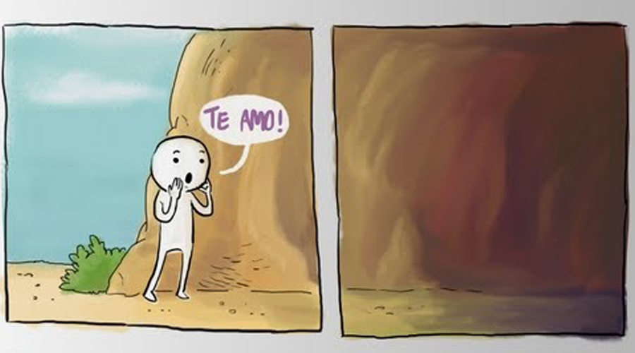 Na tirinha abaixo, uma sátira sobre como o amor “é visto” do lado de dentro da caverna.