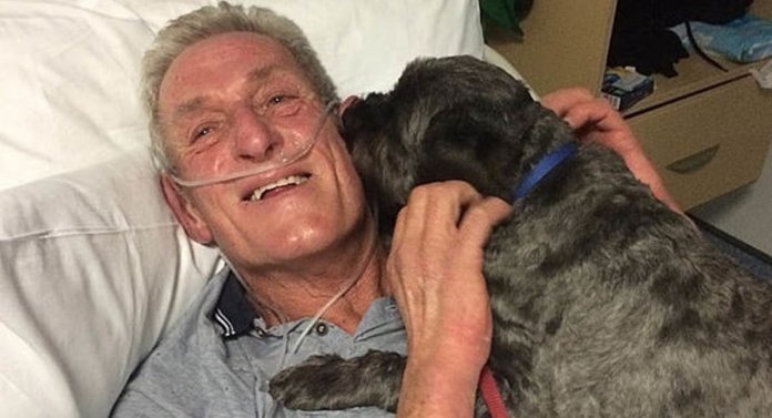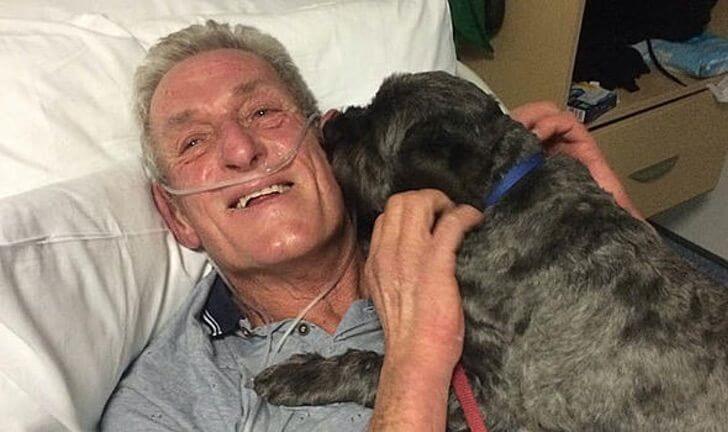 Seu tutor estava gravemente doente e a equipe do hospital deixou o cão sentar ao lado do paciente na cama.