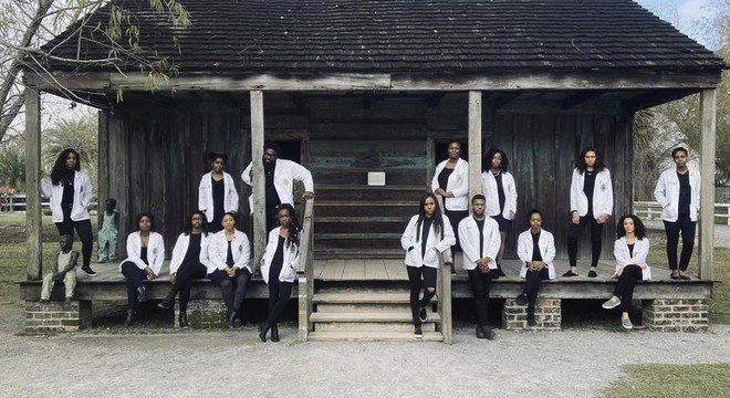 Russel foi o responsável por organizar a já célebre sessão de fotos em que ele e 14 colegas negros da faculdade de Medicina de Tulane posaram com seus jalecos brancos em frente à senzala da Whitney Plantation, uma antiga fazenda escravocrata que hoje é um museu.