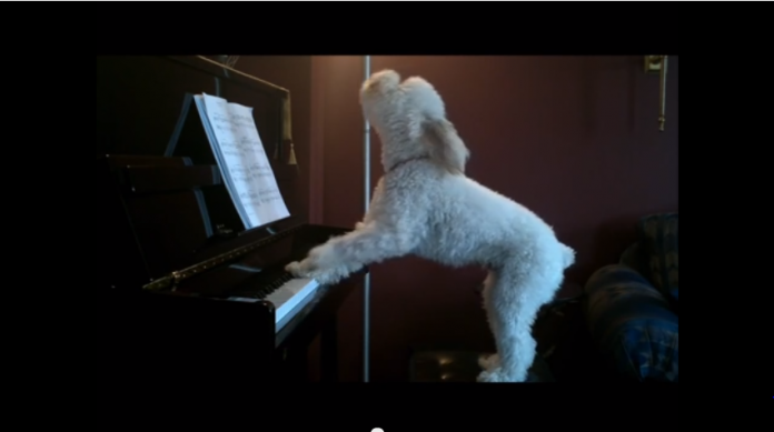 Tucker é um cãozinho de um ano e meio que sobe no piano 3 a 4 vezes por dia para, nada mais nada menos, do que “tocar” e “cantar”.