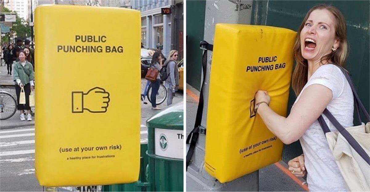 Em Manhattan, eles instalaram sacos de boxe para aliviar o estresse. Não é fácil viver em grandes cidades
