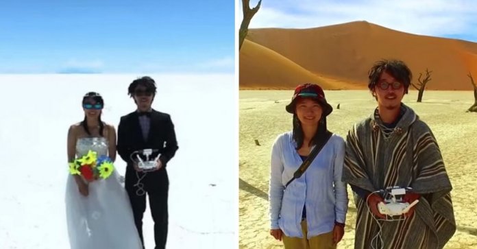 E isso é exatamente o que esse casal de recém-casados do Japão, Kaz e Mariko Yamaguchi decidiram: usar todo o dinheiro que foi considerado para o casamento deles viajar pelo mundo, em uma aventura que durou 400 dias. O melhor de tudo? Que a viagem seja registrada de uma maneira maravilhosa com um drone.