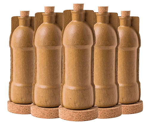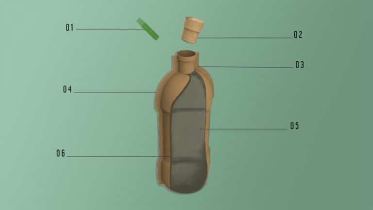 Além disso, no site da Kagzi Bottles eles descrevem que, para obter suas garrafas sustentáveis, eles têm uma tecnologia de embalagem patenteada em que “a polpa é moldada em duas metades, que são então revestidas com uma solução impermeabilizante e coladas com uma prensa a quente para criar o garrafa e estes são 100% compostáveis, sustentáveis e viáveis para colocar qualquer marca”.