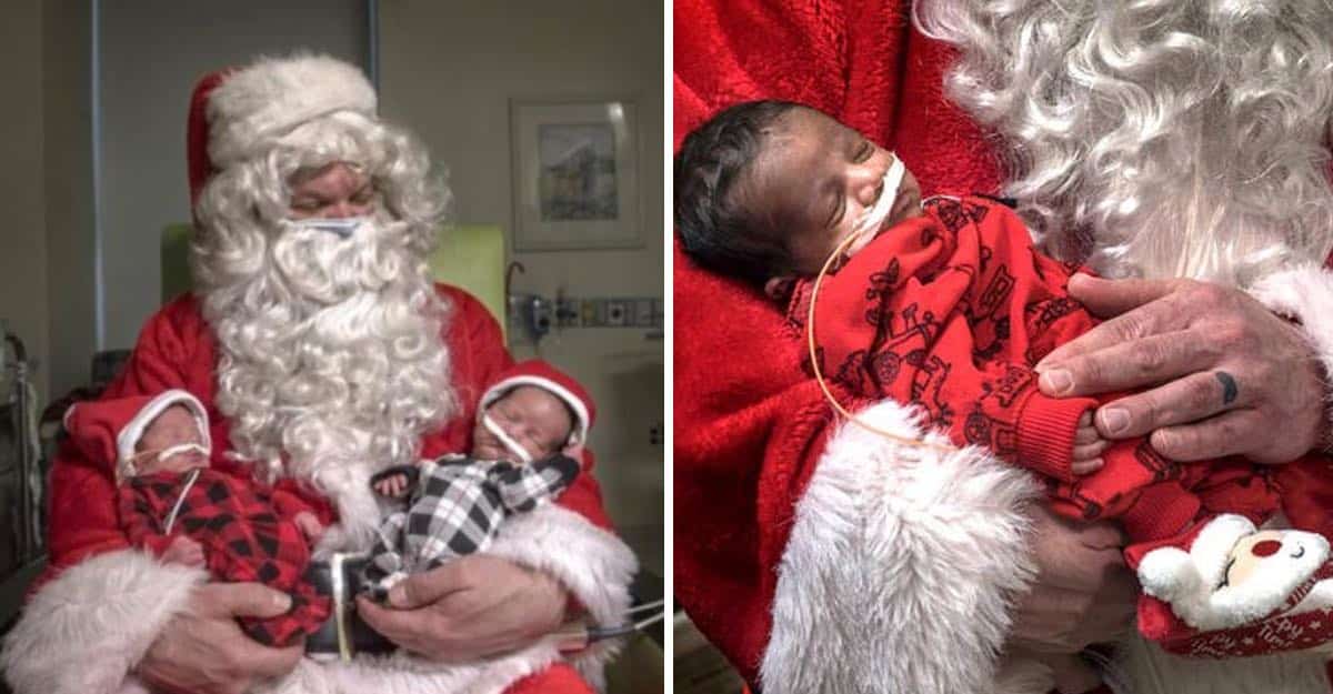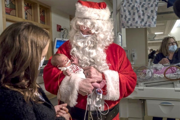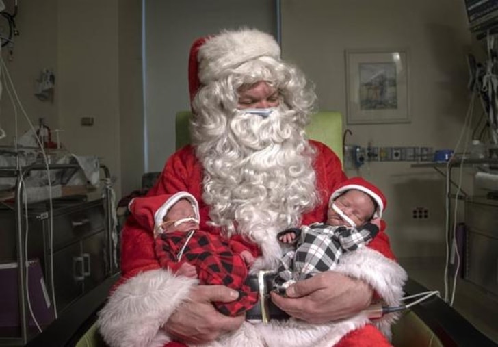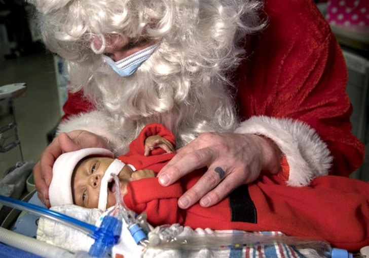 Jason Yakes, enfermeiro da Unidade de Terapia Intensiva Neonatal do Hospital Infantil Helen Devos, em Michigan, fez uma visita especial aos bebês prematuros que tiveram que ficar no hospital no dia de natal. Por isso, ele foi vestido de Papai Noel.