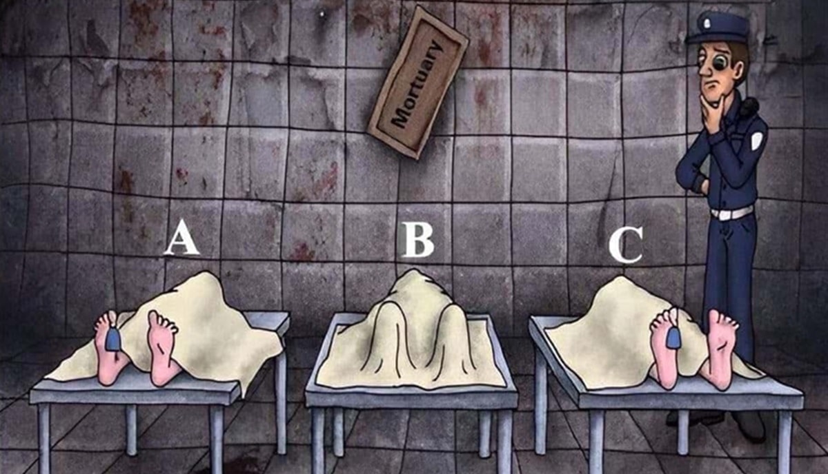 Alguns testes visuais funcionam justamente porque levam o olhar para o lugar errado. À primeira vista, a cena parece simples: três corpos cobertos em um necrotério e uma única pergunta para resolver.