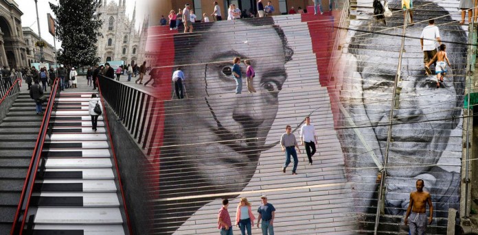 Escadas musicais em Milão, Itália