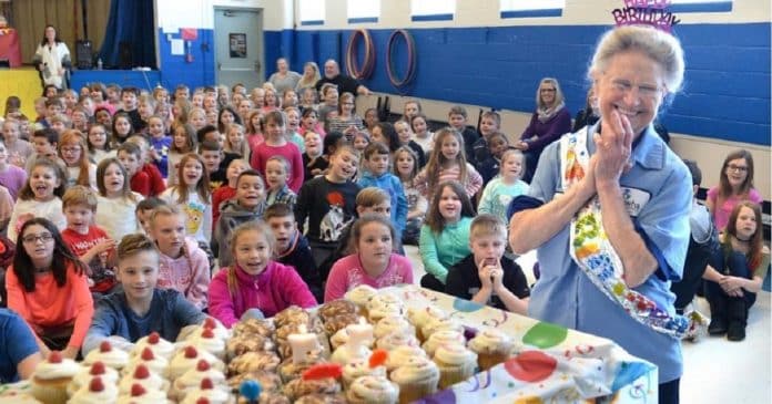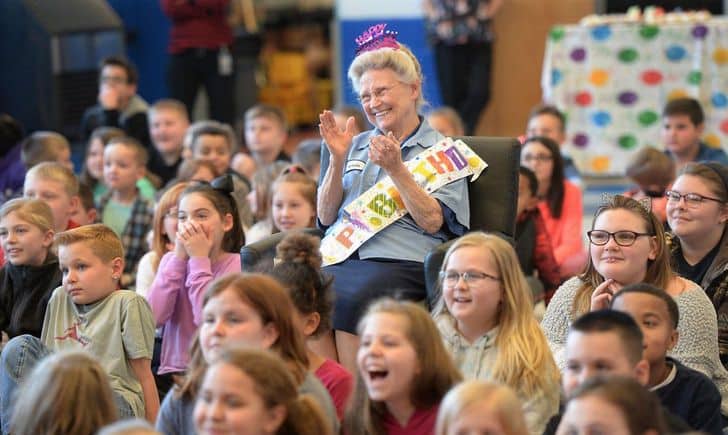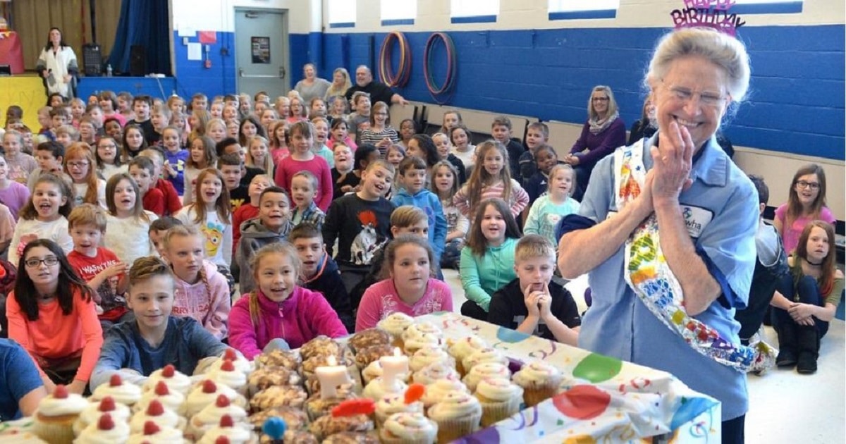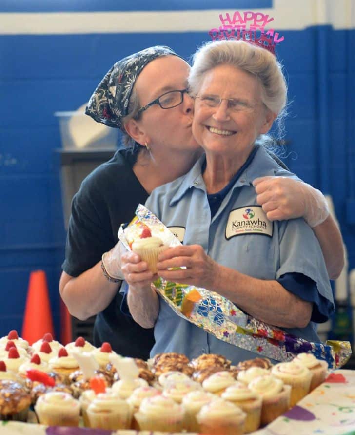 Frances Buzzard, de 77 anos, trabalha como zeladora de uma escola em West Virginia, nos Estados Unidos, e recebe esse amor da comunidade educacional todos os dias que vai trabalhar.