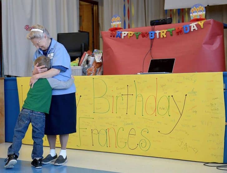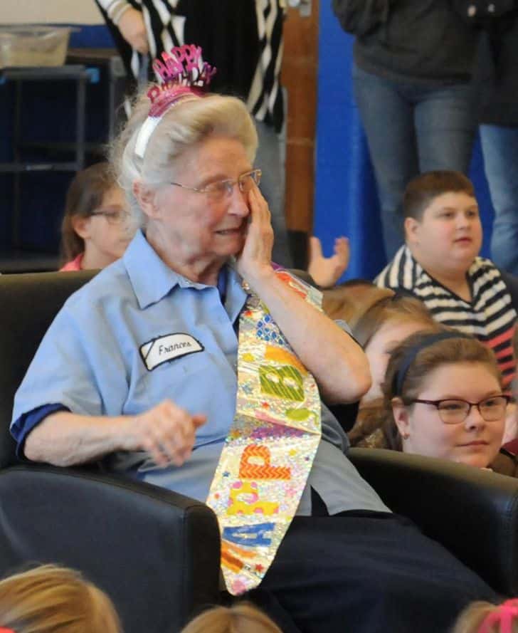 No entanto, segundo informações do Charleston Gazette-Mail, ela nunca teve um aniversário surpresa. Essa informação chegou aos diretores da escola e eles decidiram fazer uma festa no refeitório para retribuir todo o amor que Frances tem pela Belle Elementary School.