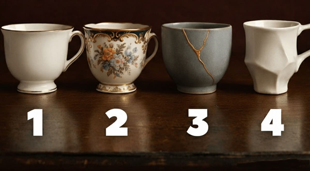 Se a sua escolha foi a xícara restaurada com detalhes dourados, o sinal aponta para alguém que reconhece valor nas próprias marcas. Esse tipo de preferência costuma aparecer em pessoas mais conscientes da própria trajetória, que entendem que fases difíceis também moldam maturidade.