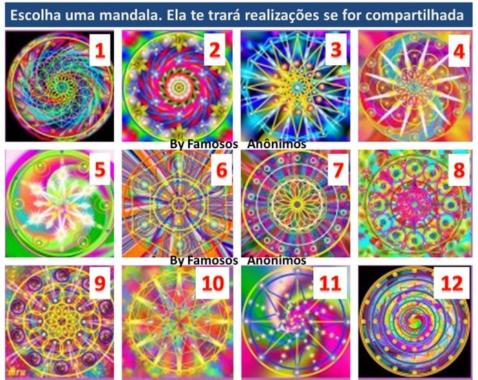 Abra a mensagem, escolha uma mandala e leia o seu significado. Depois é só compartilhar!!!