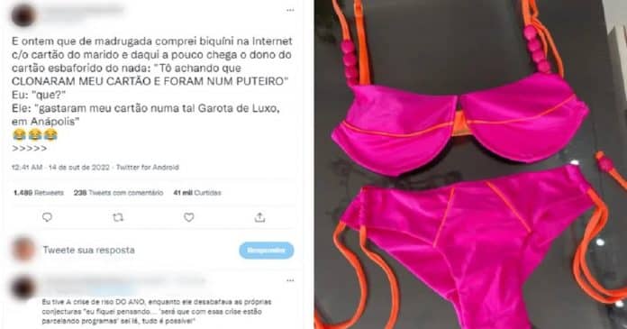 Uma mulher viralizou nas redes sociais após fazer um post contando que comprou um biquíni pela internet e o marido pensou que o cartão de crédito dele tivesse sido clonado e usado em uma casa de prostituição. O que causou o mal entendido é o fato de a loja, que fica em Anápolis, a 55 quilômetros de Goiânia, se chamar “Garota de Luxo”. A compradora vive no Rio de Janeiro.
