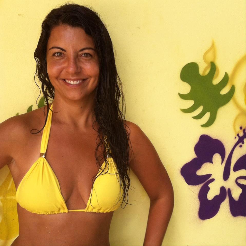 Nina tem 40 anos, é Professora de Yoga e SUP Yoga, surfista e escritora.