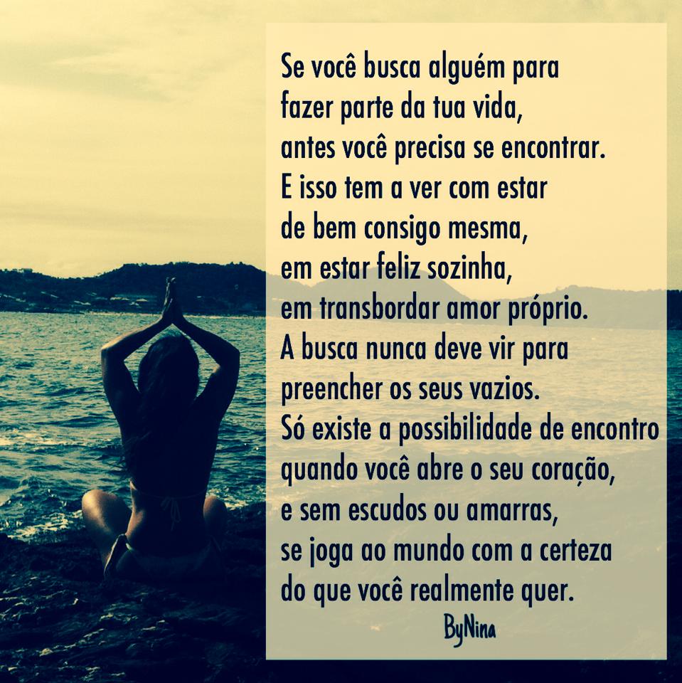 Antes da busca você precisa se encontrar. E isso tem a ver com estar de bem consigo mesma, em estar feliz sozinha, em transbordar amor próprio.
