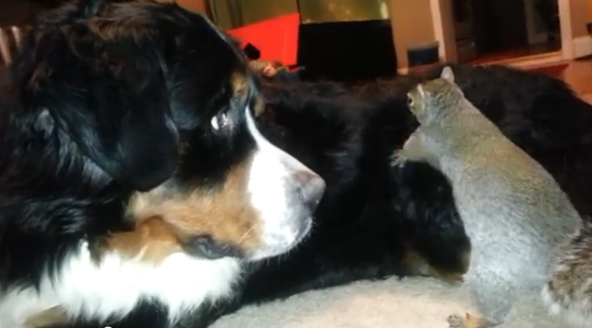 Prestem atenção nas PATINHAS do esquilo, por um lado, e na passividade do cão, por outro!!!!