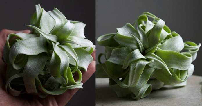 Conheça a Tillandsia Streptophylla, uma planta aérea que foi chamada de “fábrica de massas” devido aos muitos cachos que suas folhas criam. Essas plantinhas são muito interessantes – quando você as rega com mais frequência, elas ficam onduladas, como macarrão, e quando você as rega menos, elas ficam muito encaracoladas.
